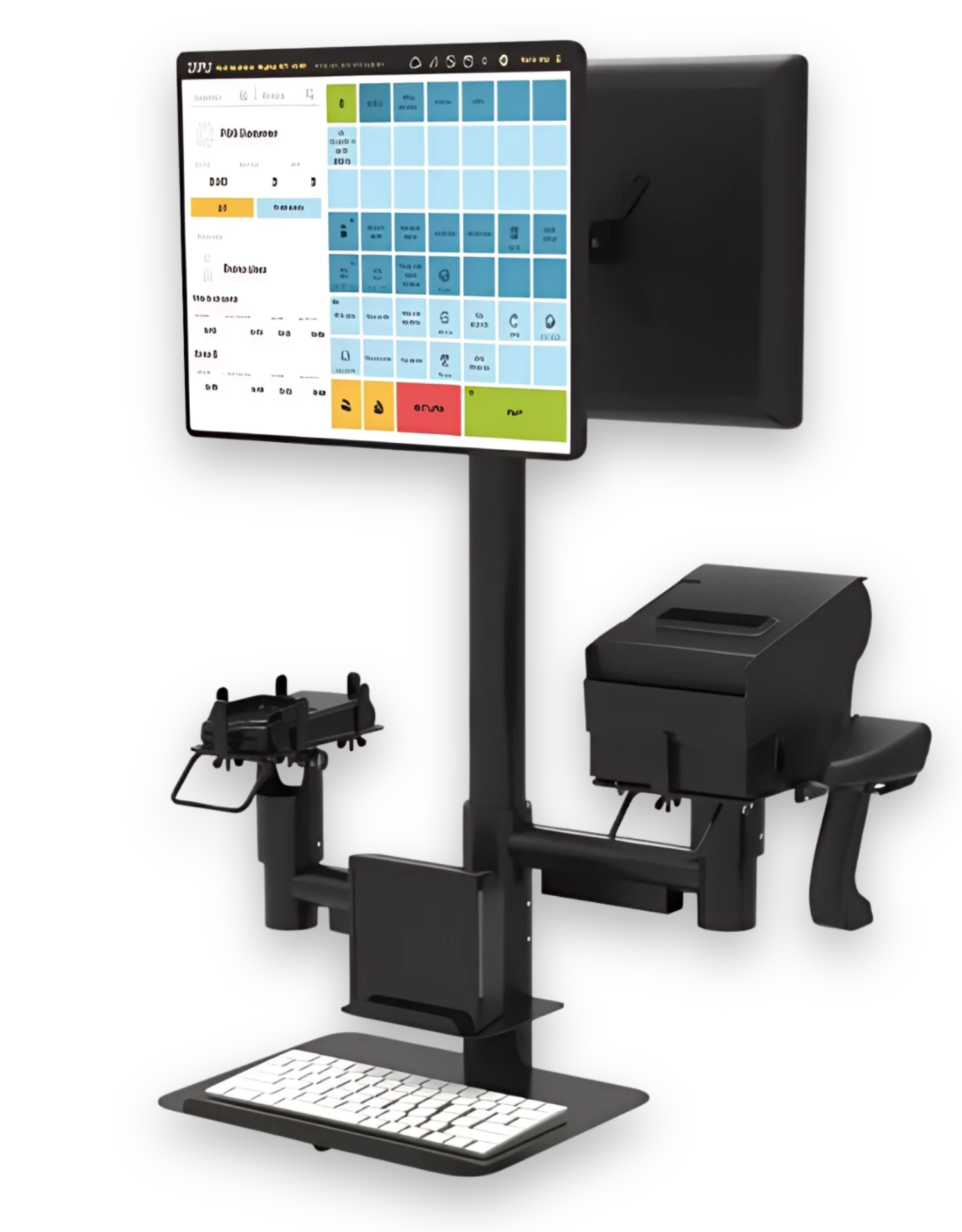 Los soportes para pantallas, terminales de pago e impresoras son ajustables en ángulo.